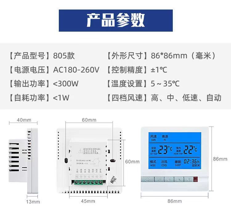 浩海 适用于中央新风系统温控器 工程项目专用 智能恒温控制稳定耐用